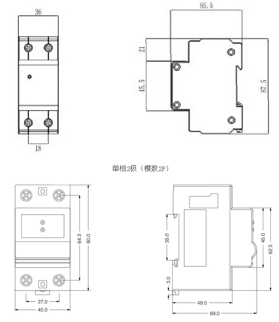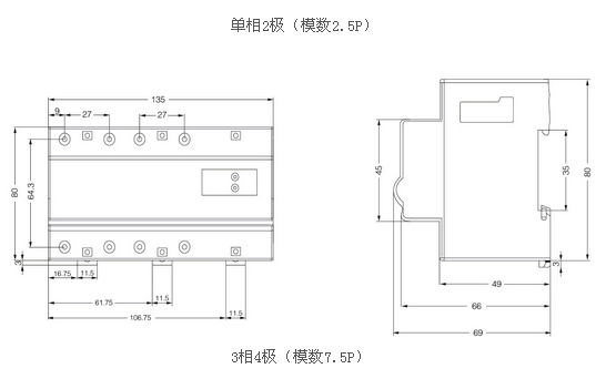 外形模數化設計,導軌式安裝,接線(xiàn):25平方毫米及以下絕緣導線(xiàn)。